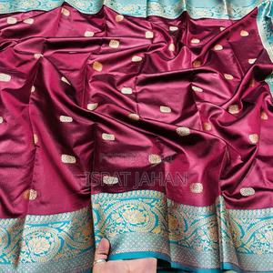 Maroon colour katan silk saree with blouse piece