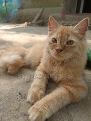Ginger color male kitten potty trained in later box. Food habit: boiled chicken, fish, vegetable and cat food.